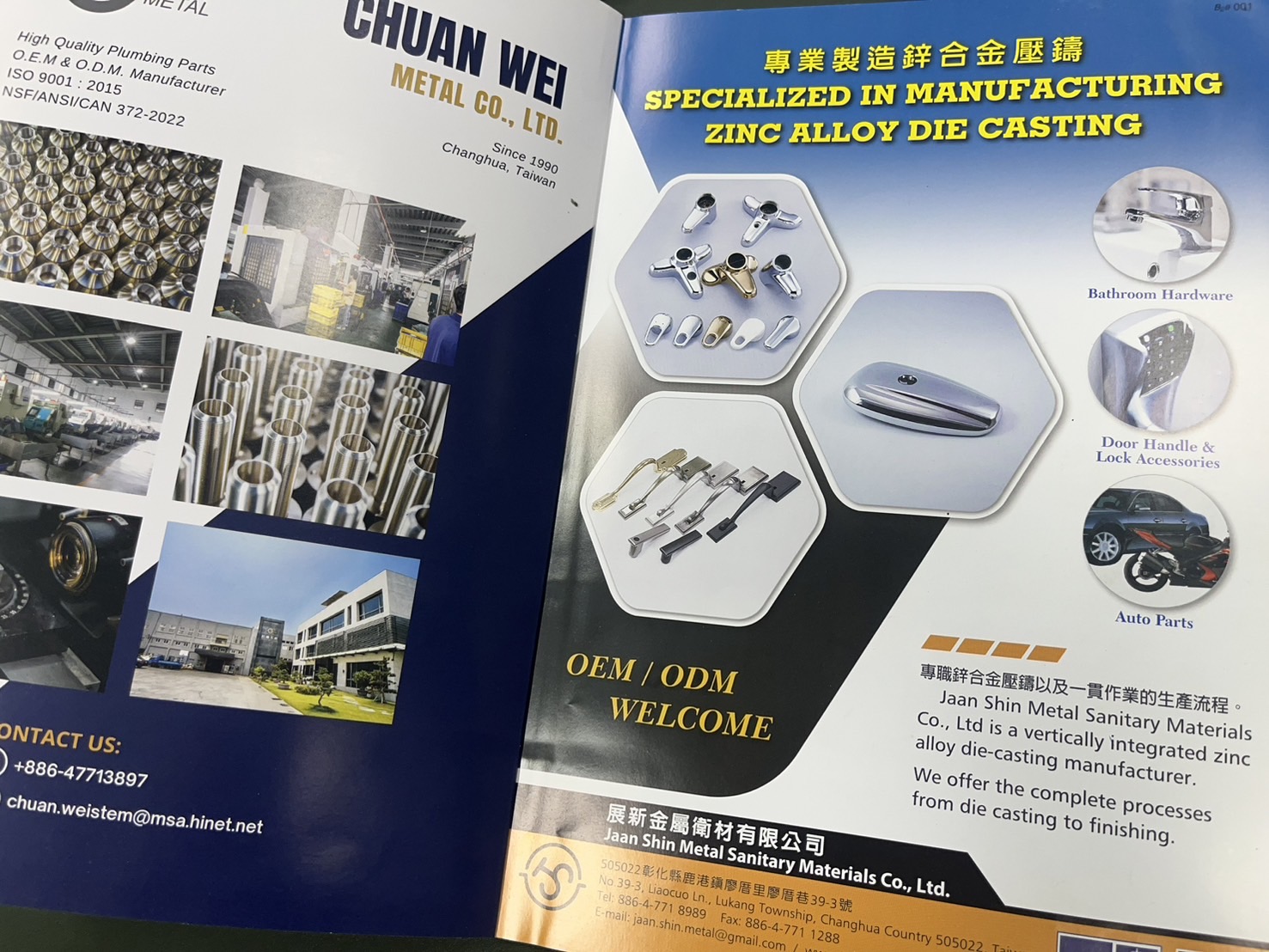 Jaan Shin Metal Sanitary Materials Co., Ltd is featured in the 2023–2024 Taiwan Plumbing Hardware Yearbook